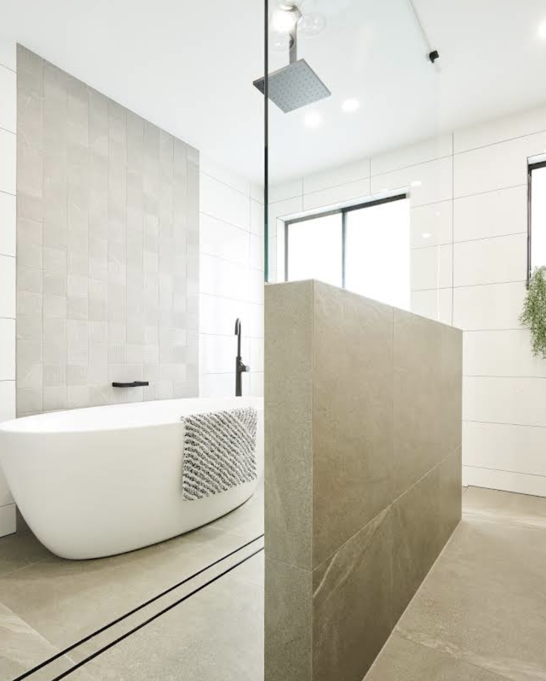 Inclusions that others won’t: freestanding baths, 10mm frameless shower screens, rectified porcelain tiles, designer